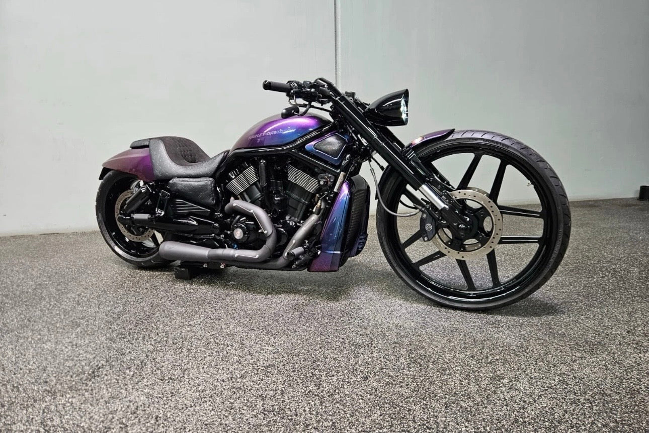 A 23” front billet wheel to suit your nightrod fitted with either abs or non abs bearings setup to fit straight to your harley while using the oem spacers.