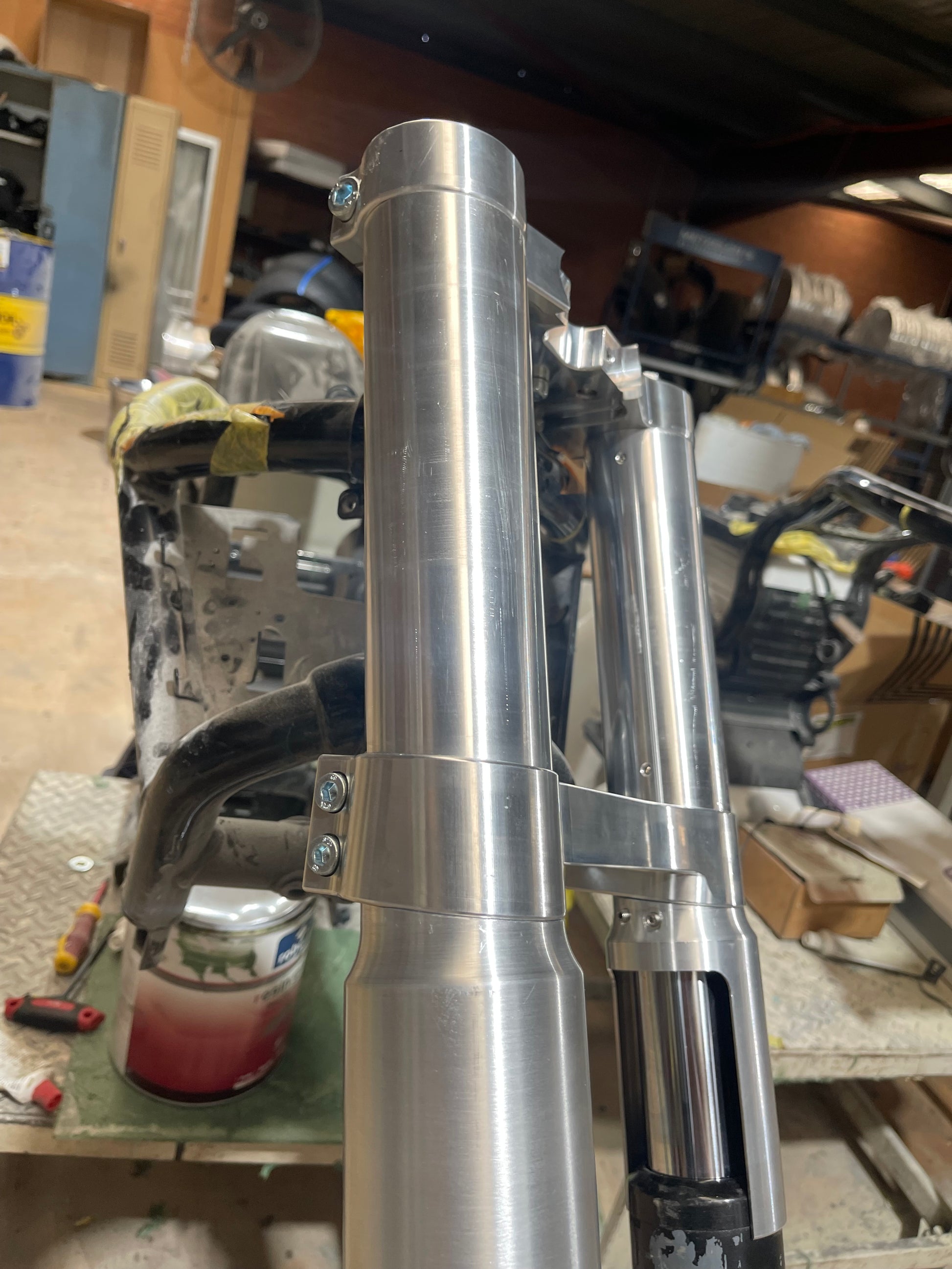 6 or 8 degree rake kit for the pre 2012 vrods with the 49mm shocks along with the 4 piece fat fork sleeve kit.